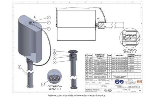 Con lo scopo di ricaricare le batterie che alimentano tutti i servizi di bordo (dalla strumentazione, alla cucina, all’infotainment), un conduttore di un’imbarcazione a vela è costretto inevitabilmente ad avviare il motore endotermico di supporto o collegarsi ai servizi di ricarica elettrica in banchina. Spesso molti armatori scelgono di installare sistemi dotati di moduli fotovoltaici flessibili sulle superfici libere dei ponti o turbine eoliche ad asse orizzontale a poppa. Tali dispositivi, tuttavia, non permettono un’efficace supporto alle batterie in quanto i primi sono costantemente oscurati dalla presenza del sistema velico e dei passeggeri, le seconde devono orientarsi al vento per poter operare. Viene qui proposta una soluzione del tipo eolico ad asse verticale, di concezione Savonius, che non ha necessità di orientarsi al vento e che dispone di una coppia di spunto molto elevata, permettendo alla turbina di ruotare per la maggior parte del tempo di esposizione al vento.